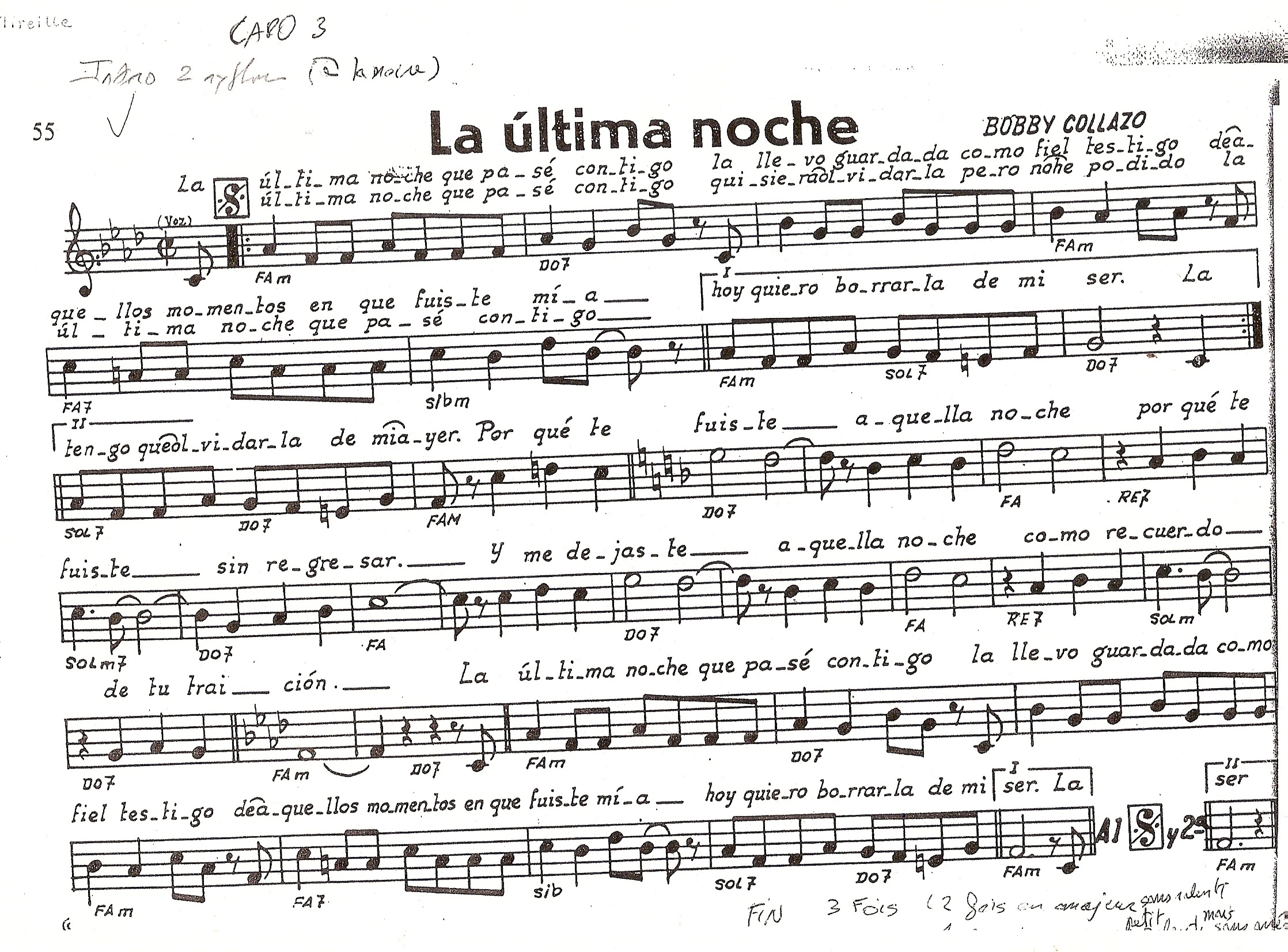 - La Ultima Noche, Bolero, Cuba, Bobby Collazo.